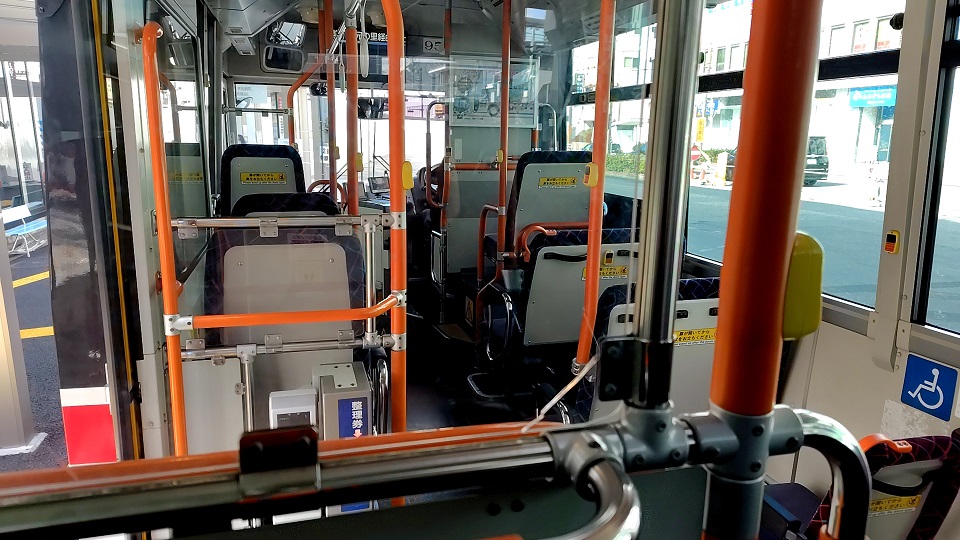 60番台」の系統のバスに乗車し、「篭田公園前」バス停に向かいます。