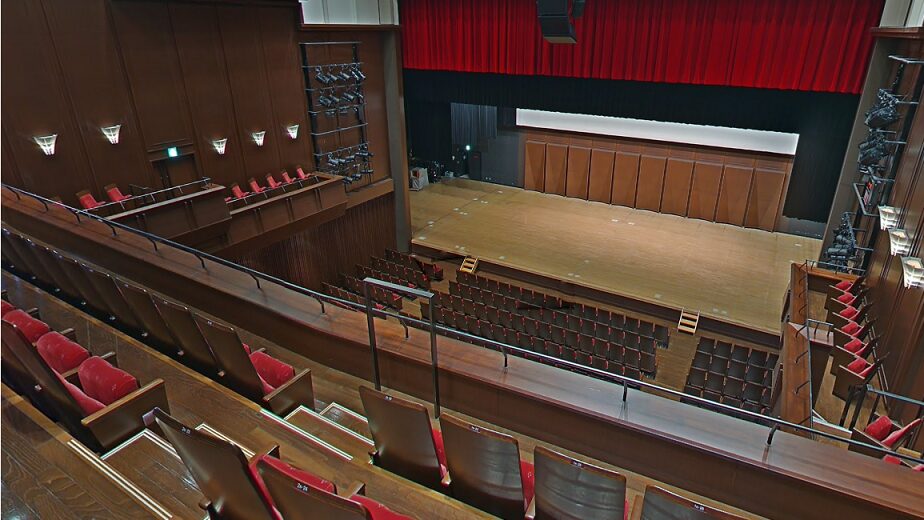 総客席数は345席(固定席247席、桟敷席92席、車いす席2席、親子室4名)で、ワンフロア構造です。