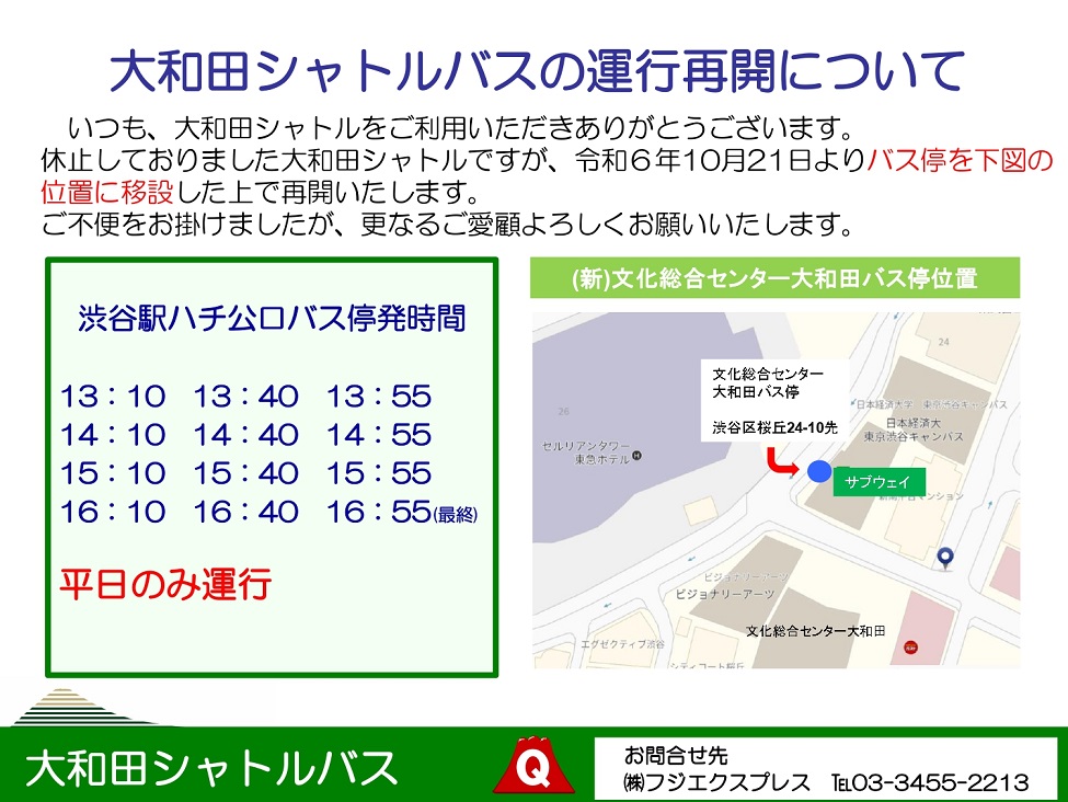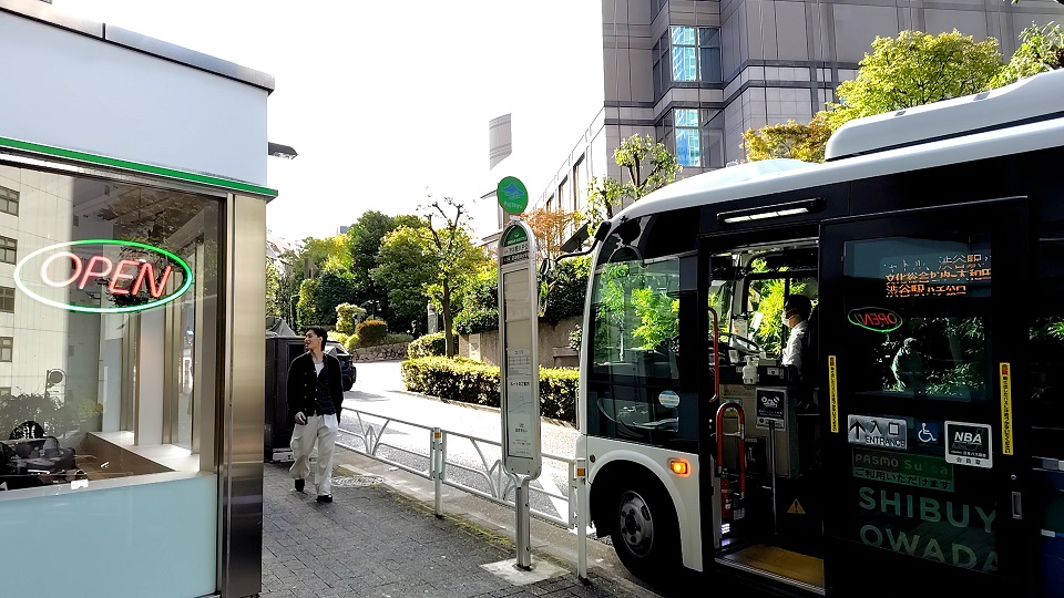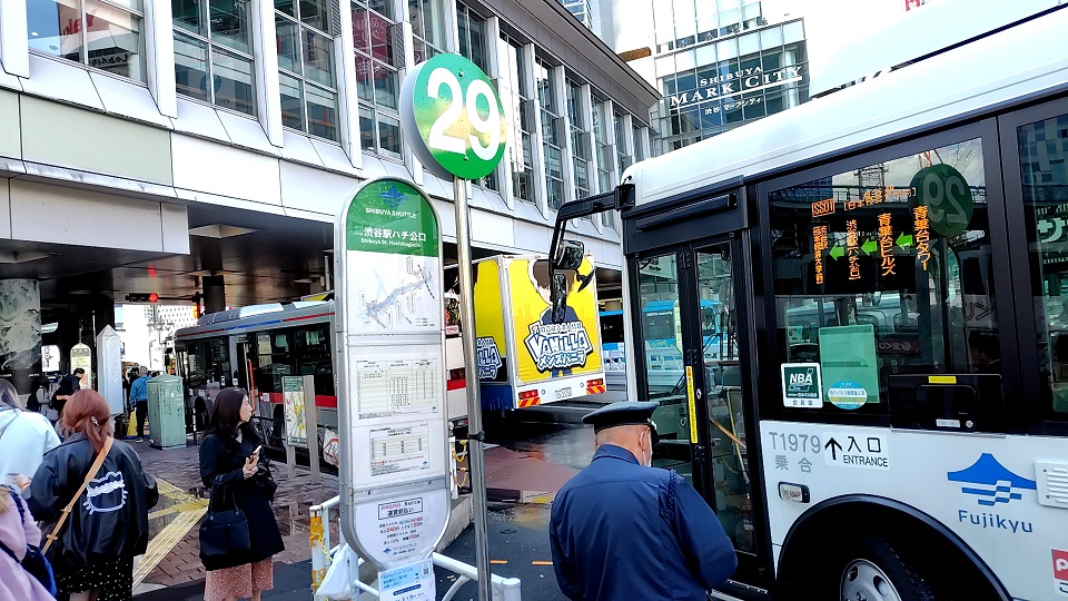 ハチ公口からはもう1つ、平日の日中限定で「大和田シャトルバス」も運行しています。ハチ公バスと同じく1乗車100円で、こちらは渋谷駅西口と会場前を結ぶ、まさに駅から会場専用の便です。今回私は平日のイベントに参加したので、こちらを利用しました。