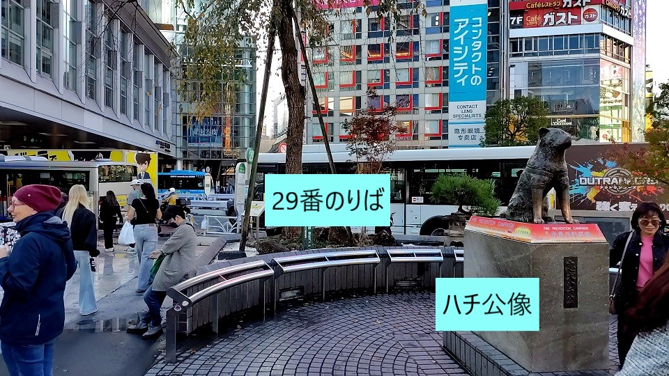 渋谷駅はご覧の通り複雑な構造なので、新南改札がわからず、間違えて反対方向の「ハチ公口」「西口」等に出てしまった場合は、徒歩はあきらめてバスを利用した方が、混乱は少ないと思います。