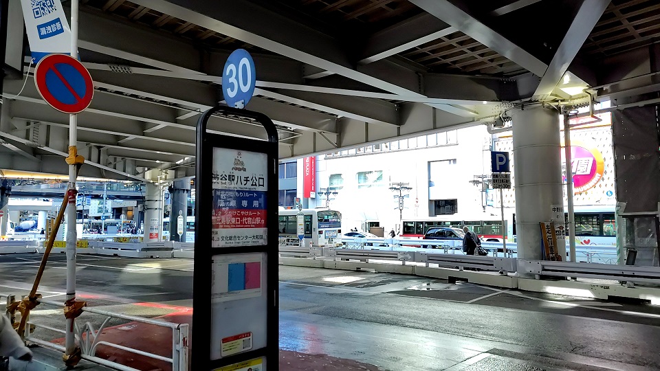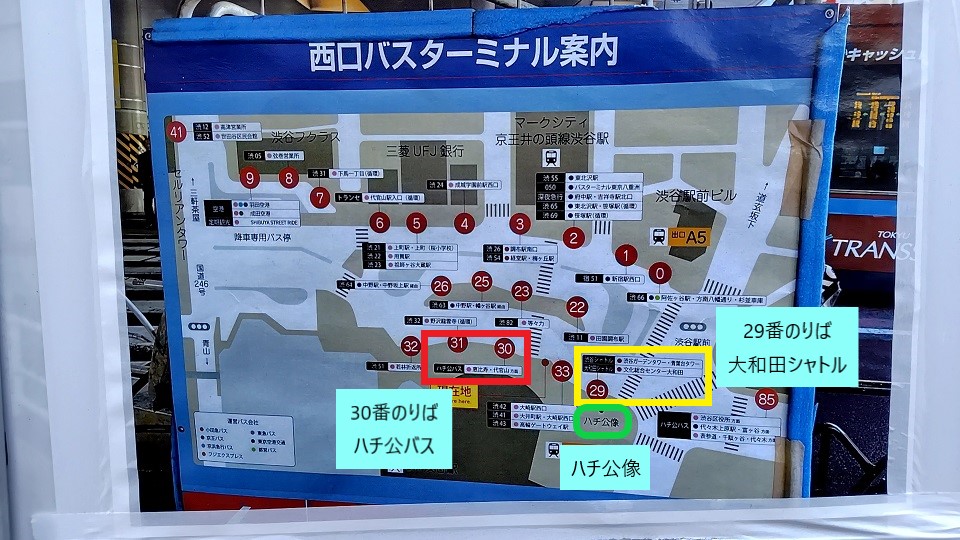 会場までは、西口バスターミナルのハチ公像に近いバスのりばから、「ハチ公バス」と「大和田シャトル」の2種類のバスが出ています。