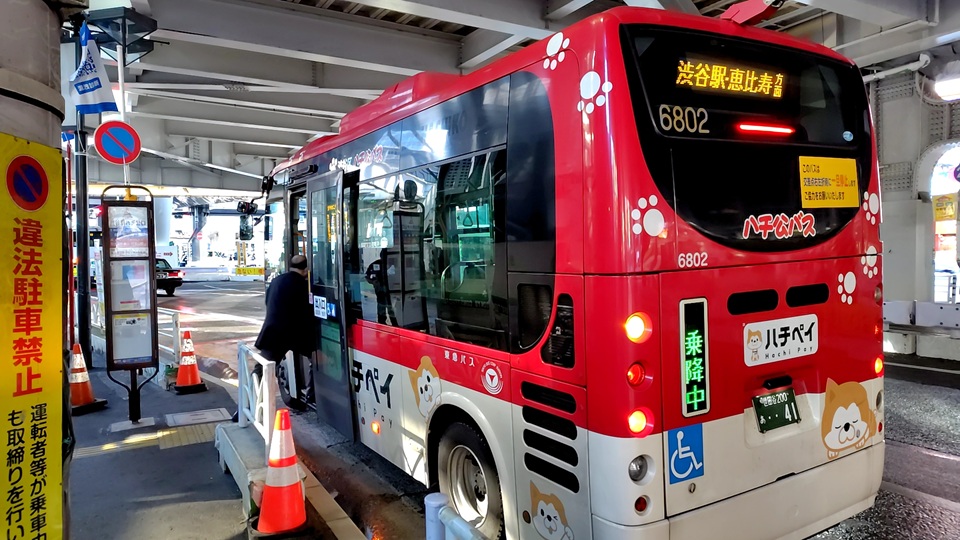 渋谷区のコミュニティバスである「ハチ公バス」は、渋谷駅や区役所を拠点に4つのルートが運行されています。駅から会場を通るルートはそのうちの「夕やけこやけルート」(恵比寿・代官山循環)で、赤い車両で走っています。