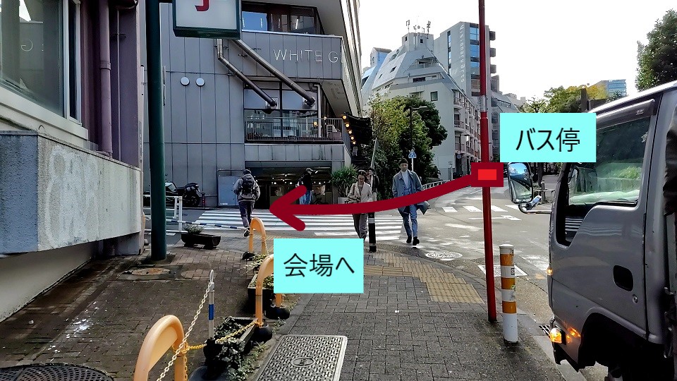 バス停はセルリアンタワー東急ホテル横の、会場を少し過ぎた所にあります。