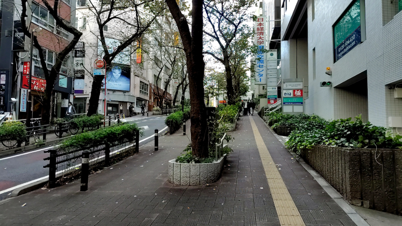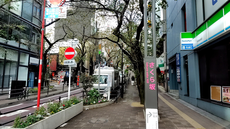 左の「さくら坂」の方が歩道が整備されているので、こちらで案内します。