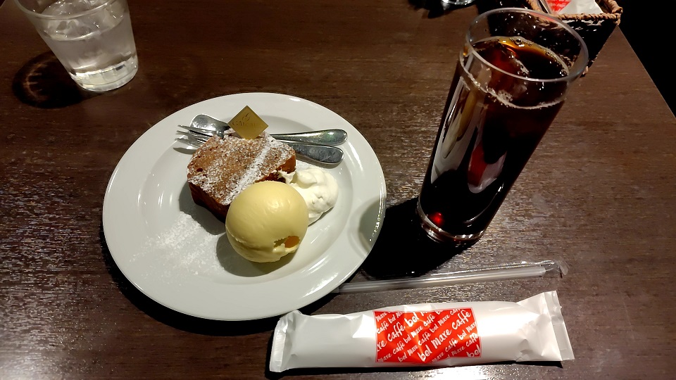 この日はバナナケーキとアイスクリームのスイーツを、アイスコーヒーとともにいただきました。