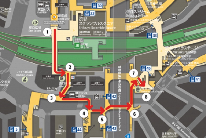 案内マップで一部引用しましたが、銀座線渋谷駅から渋谷サクラステージ(桜丘広場)までの行き方を紹介しているサイトがありますので、そちらもぜひ参考にしてみてください。