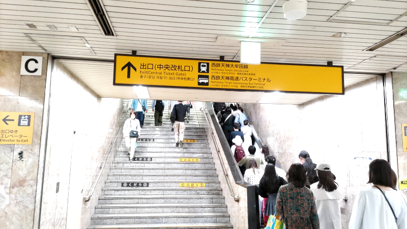 今回は中央改札口から天神地下街に向かう方法で紹介します。