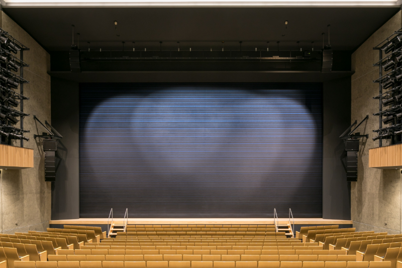 クラシックをはじめとした音楽利用はもちろん、オペラや舞台・演劇等の演目のほか、大規模な集会・セミナー、市民の文化芸術活動などの多様なニーズにも対応できる多機能ホールです。壁には落ち着いた色味の国産の天然の木材を使用しています。