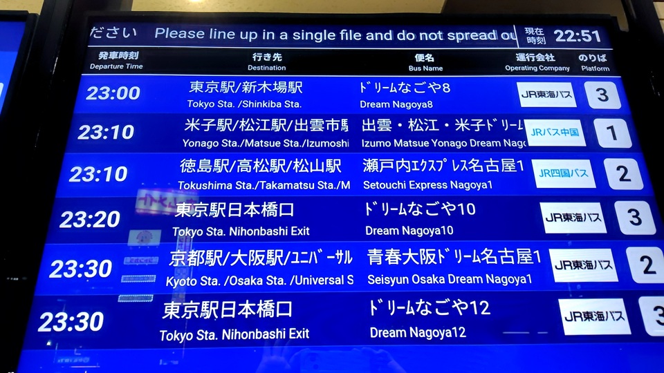 米子駅前まで高速バスを利用する方法もあります。今回私はJRバスグループが運行する「出雲・松江・米子ドリーム名古屋号」を利用しました。