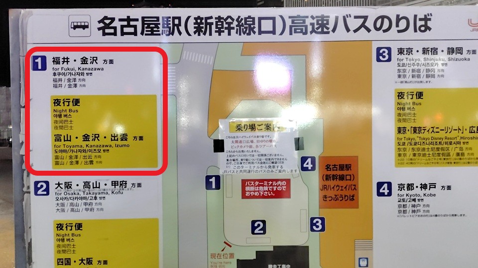 名古屋駅からは新幹線口のバスターミナルが出発場所になります。