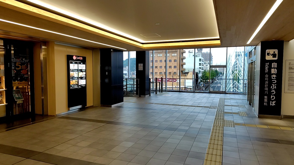 また駅ビルの商業施設「シャミネ米子」もリニューアルオープンし、1階と2階にそれぞれ飲食店やコンビニ・物販店舗が入っています。