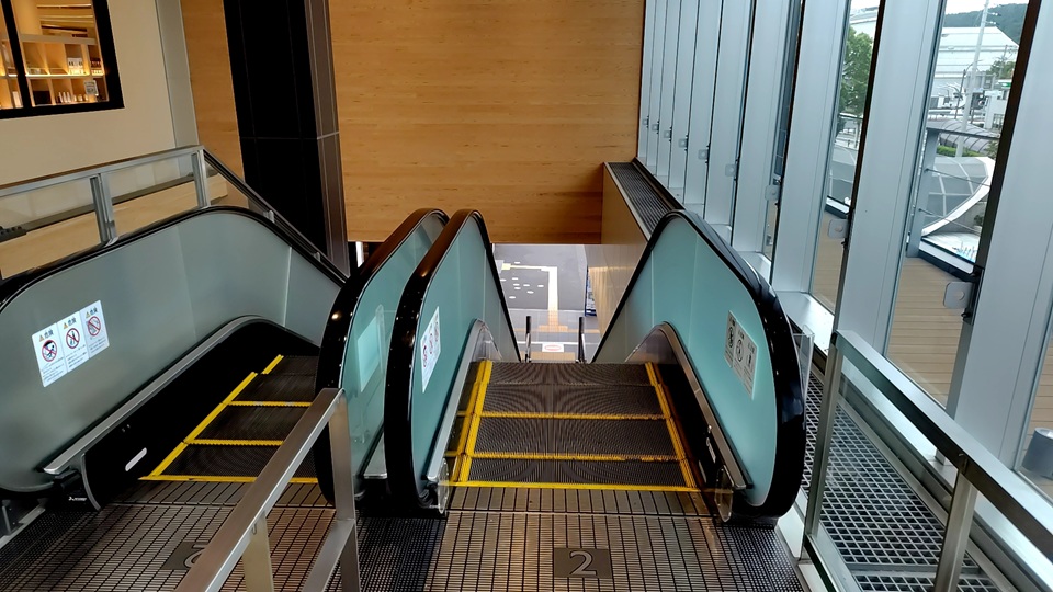 右側の階段、左側のエスカレーターのどちらでもいいので、1階に下ります。