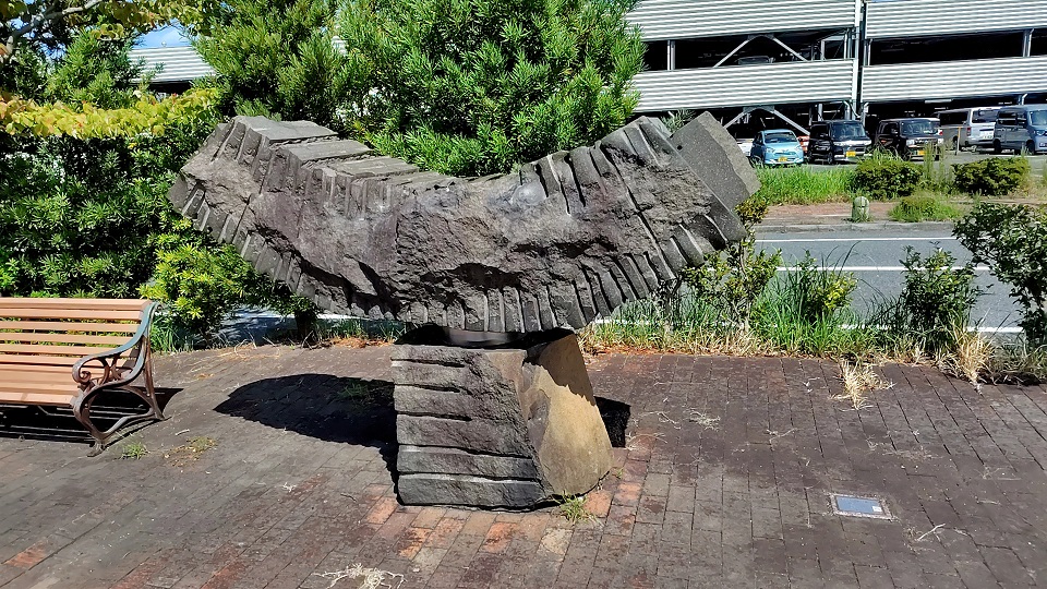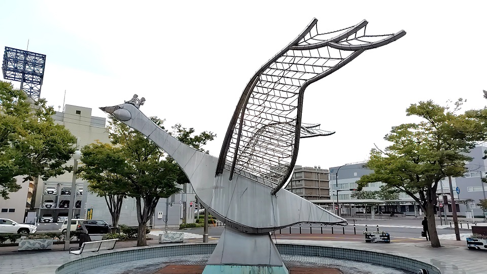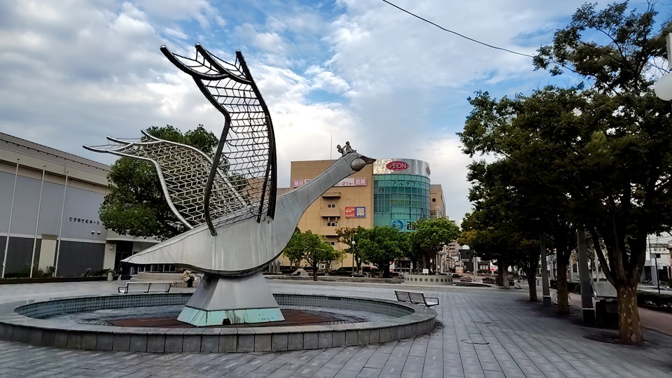 アクセスルートでも出てきたビッグシップ前交差点付近の敷地内にある白鳥のオブジェ。米子水鳥公園のコハクチョウを表現したものとのことです。