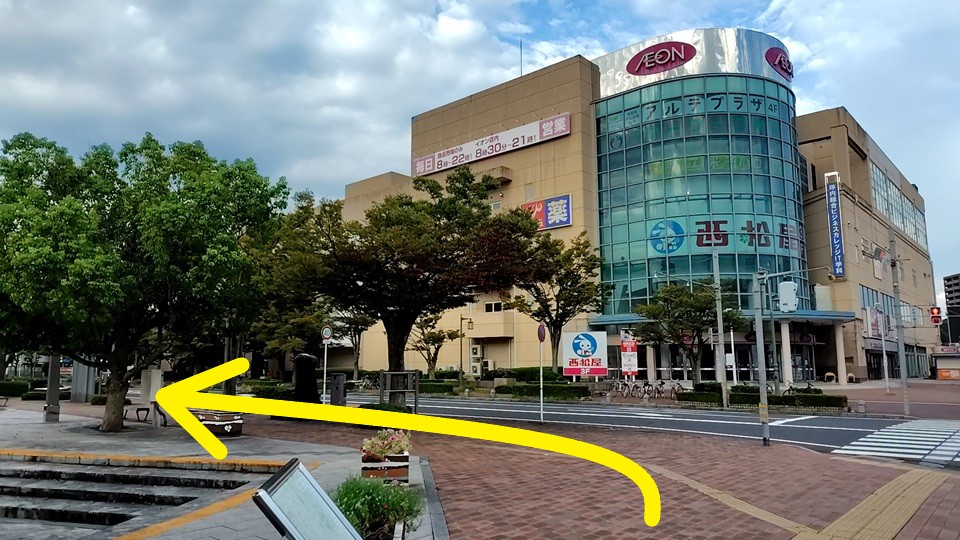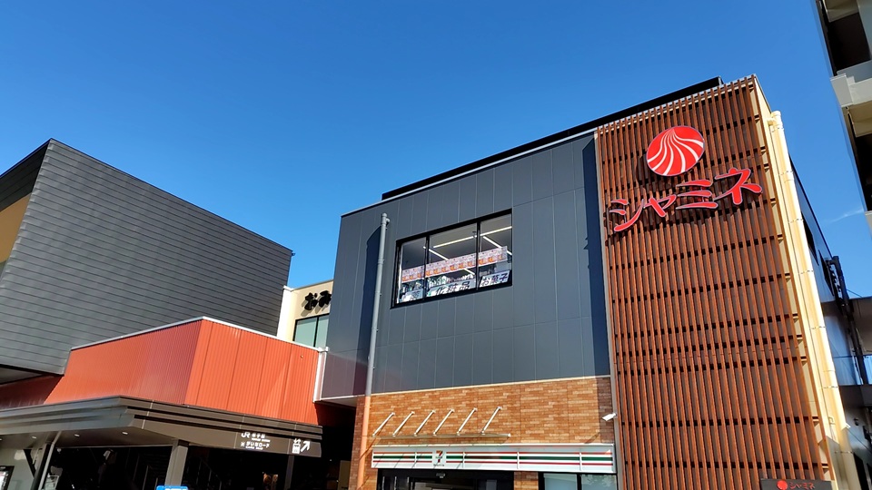 降りた先の駅ビル「シャミネ」の前を通過します。