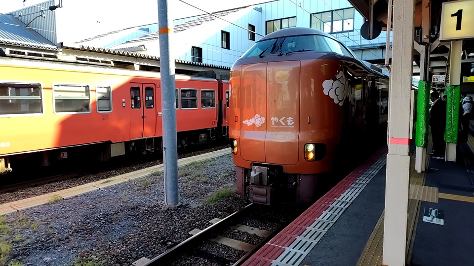 新幹線等で瀬戸内海側の岡山駅まで来たら、そこから北上し、日本海側の米子駅まで伯備線の特急「やくも」に乗り換え、米子駅を目指す方法が一般的です。