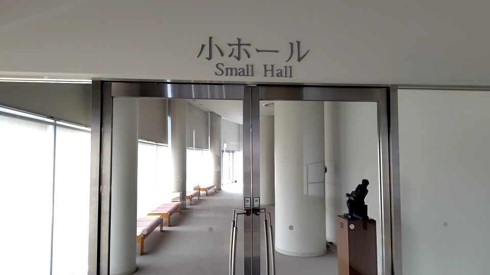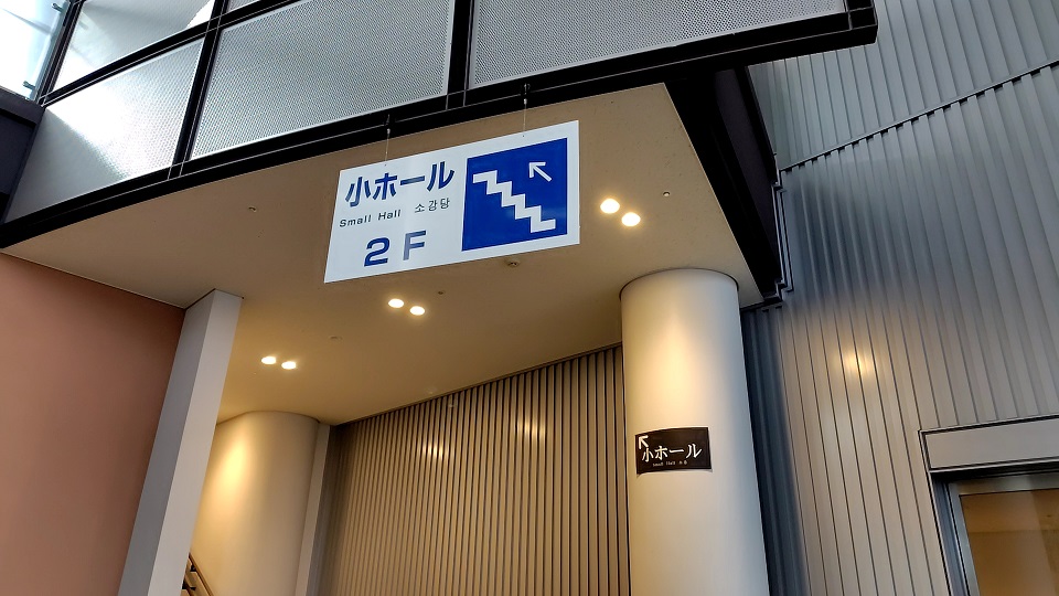 小ホールへは、階段またはエスカレーターで2階に移動します。