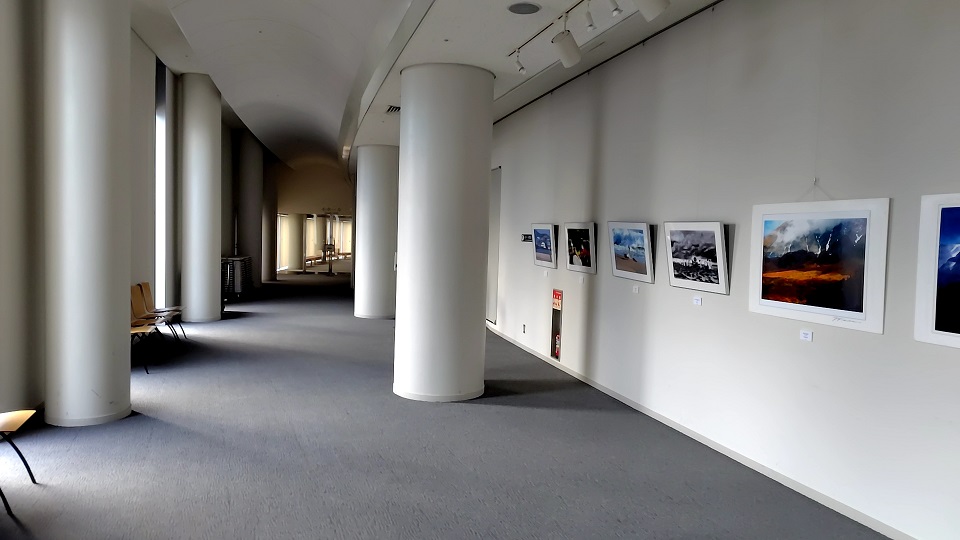 多目的広場側にある正面入口は、ホールのロビーに続いており、展示室やイベントホールに面しています。