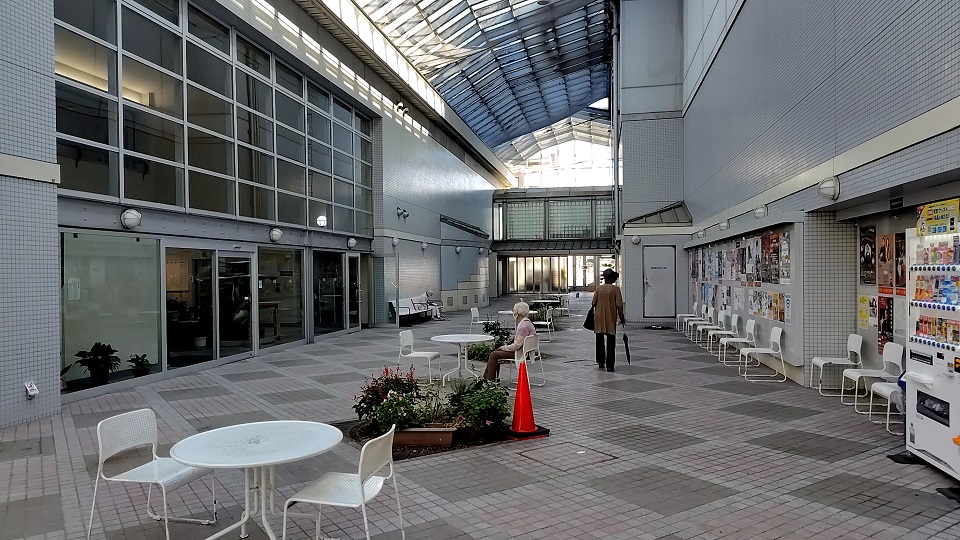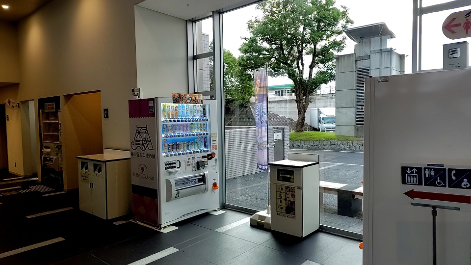 メインホール入口に面したオープンスペースには、自販機コーナーや休憩用の椅子・テーブルが設置されています。