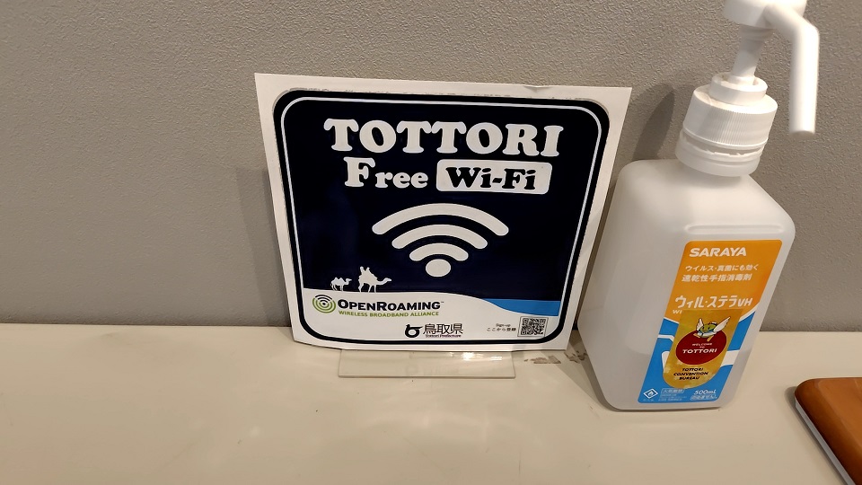 「TOTTORI Free Wi-Fi」が、1階ロビーのほか、多目的ホールの客席・ホワイエや小ホールの客席、国際会議室内でも利用できます。