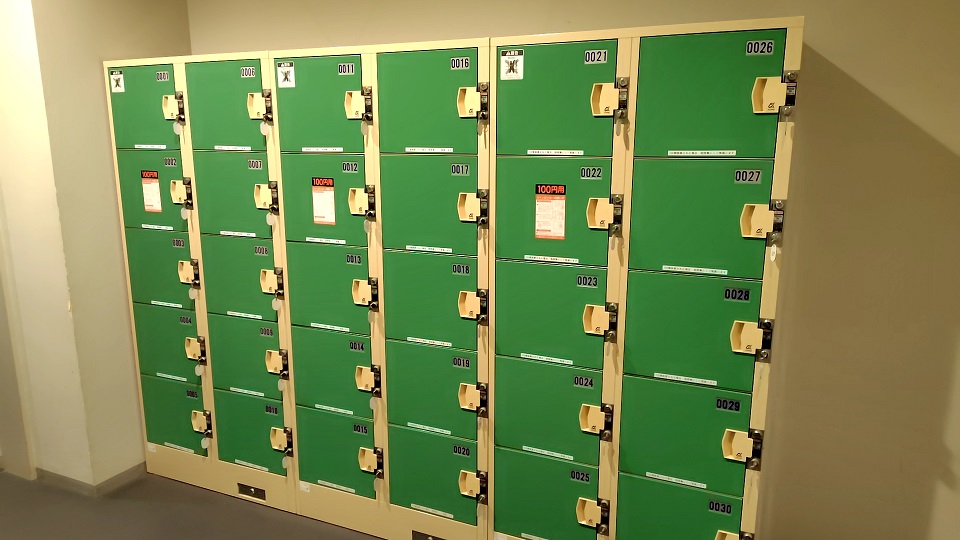 コインロッカー(有料:1回100円)は60台設置されています。サイズは幅35cm×高さ29cm×奥行42cmの1種類です。