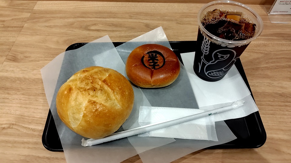 1階のベーカリーカフェ「リトルマーメイド」では定番のパンの他、地元の新名物「米子あんぱん」も売っています。