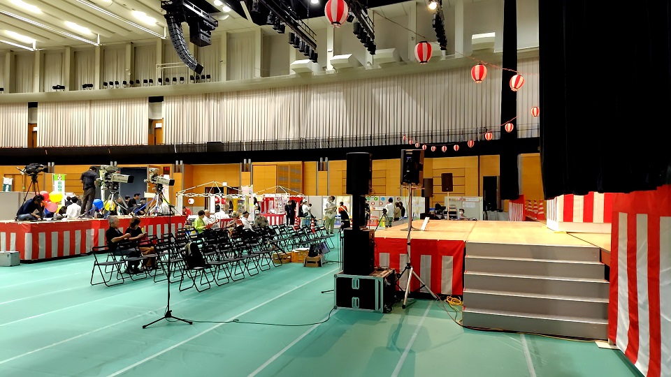 ちなみに、展示化やイベント使用時等の平土間仕様のレイアウトやステージ付近の様子は、こんな感じでした。