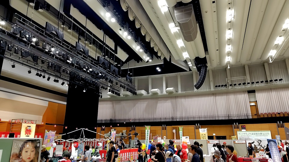 客席はホール仕様と平土間仕様の転換が可能で、今回はイベント利用で客席が取り外された平土間仕様だったため、ホール仕様の座席配置は公式サイトから借用することをご承知おきください。ちなみに平土間仕様時の座席は、床下に収納されるとのことです。