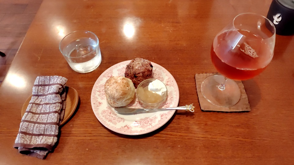 この日はプレーンとブルーベリーのスコーンとアイスティーを注文。クロテッドクリームとリンゴのジャムを付けて食べましたが、とても美味しかったです。