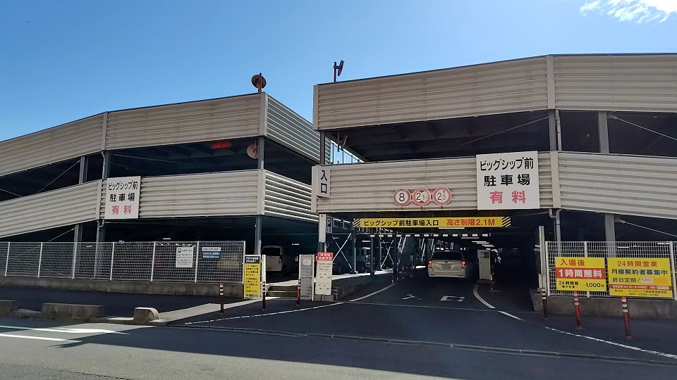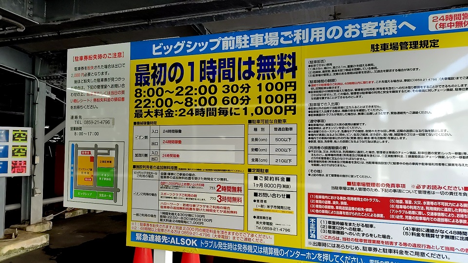 会場と道を挟んだ向かいには、ビッグシップ前駐車場(米子駅前簡易駐車場)があります。会場専用ではなく写真の通り有料ですが、会場でのコンサートやイベントで利用する場合に割引(開催時間分の駐車料金が無料)となります。
