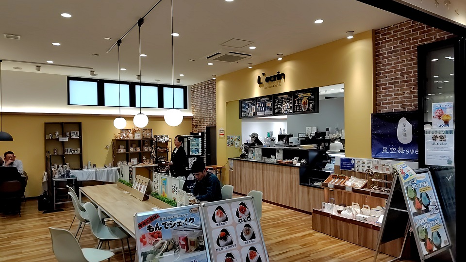 こちらは2階のカフェ「L’ecrin(レクラン)」。シフォンケーキなどのスイーツや軽食、タピオカ、ビールなども販売しています。