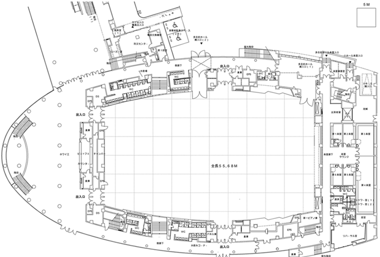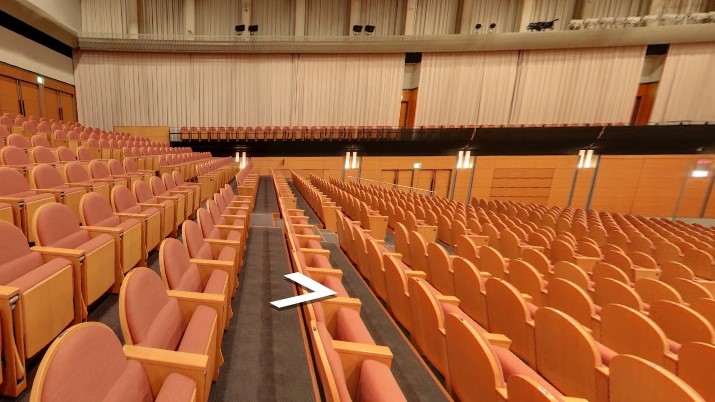 客席はホール仕様と平土間仕様の転換が可能で、今回はイベント利用で客席が取り外された平土間仕様だったため、ホール仕様の座席配置は公式サイトから借用することをご承知おきください。ちなみに平土間仕様時の座席は、床下に収納されるとのことです。