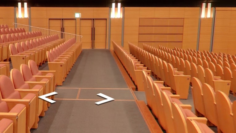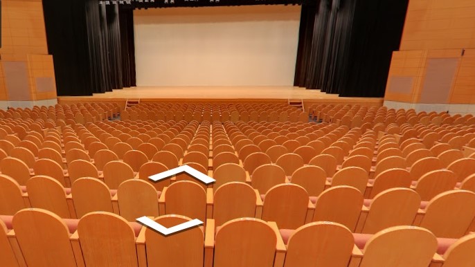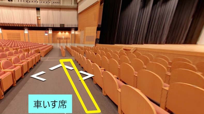 出典:施設内 googleストリートビューより6列~7列間の中央通路・車いす席 6列後方からの眺め